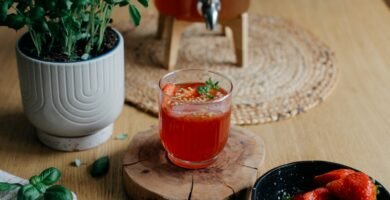 Refrescante maqueta de verano con kombucha casera y fresas fermentadas